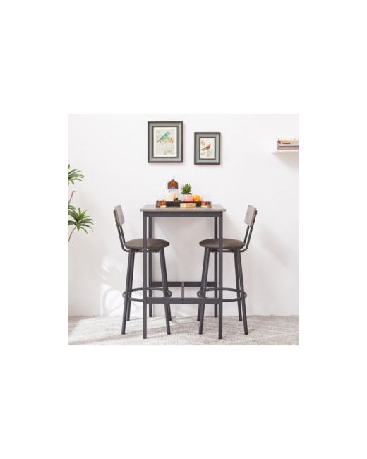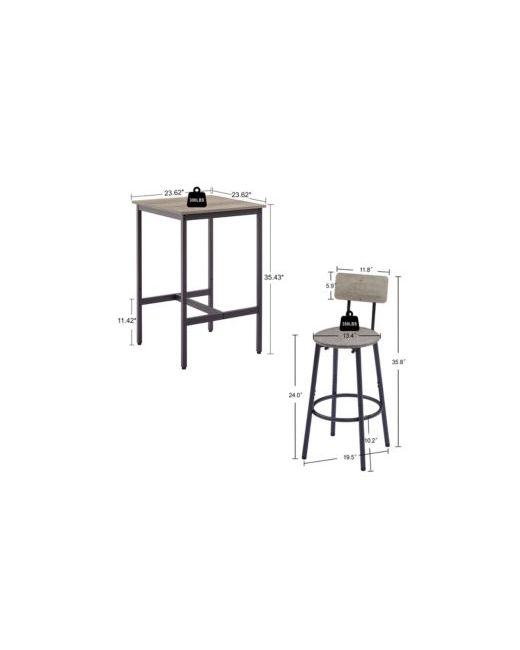 Gray Bar Table Set with 2 Cushioned Backrest Stools 23.62 W x D 35.43 H