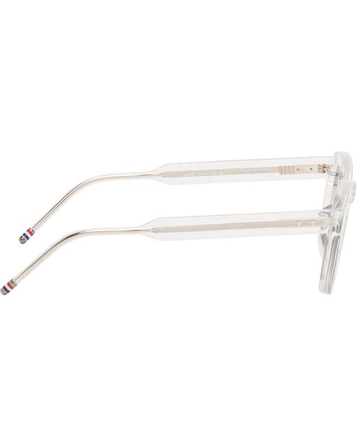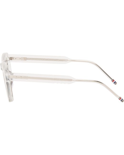 Square transparent acetate-frame sunglasses. · Gray lenses · Keyhole bridge · Integrated nose pads · Enameled tricolor stripes at temple tips · Includes case · Size: 48.23 147 Supplier color: Clear/Transparent