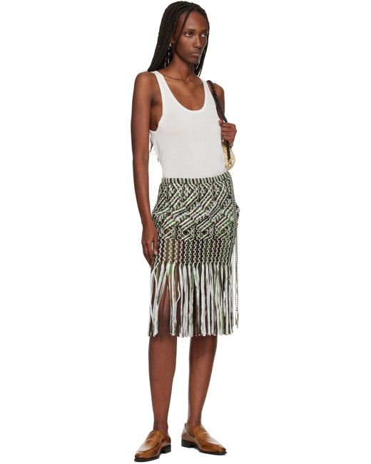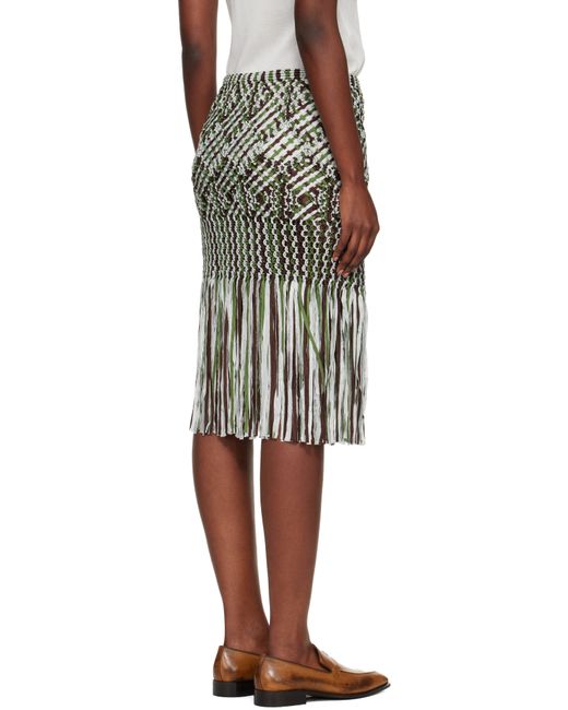 Semi-sheer viscose macramé midi skirt. · Zip closure and extended trim at side waist · Fringe at hem Supplier color: Green/Pale blue/Burgundy