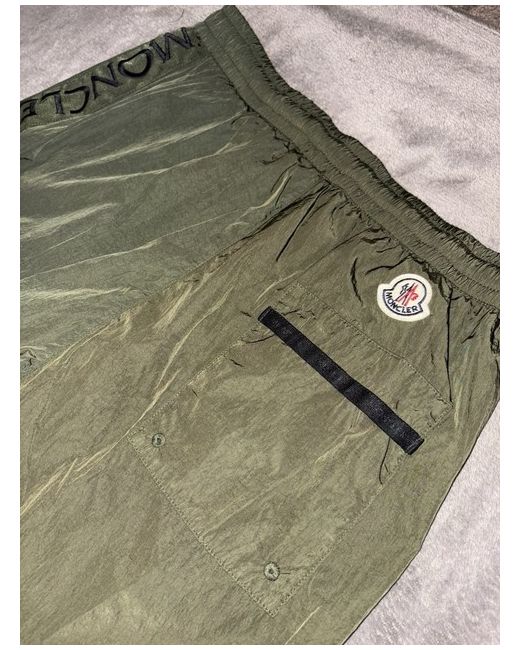 Never worn new without tags 100% genuine The Moncler Shorts in size M are perfect for casual occasions in the summer season. Made from comfortable cotton material, these khaki green shorts feature the iconic Moncler logo accent. With a regular fit and flat front design, they are ideal for a sporty yet stylish look. The shorts also have slash pockets for added convenience. Whether you're hitting the beach or enjoying a casual day out, these Moncler shorts are a must-have for any man's wardrobe.