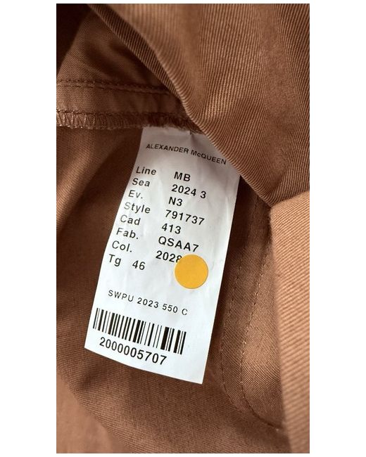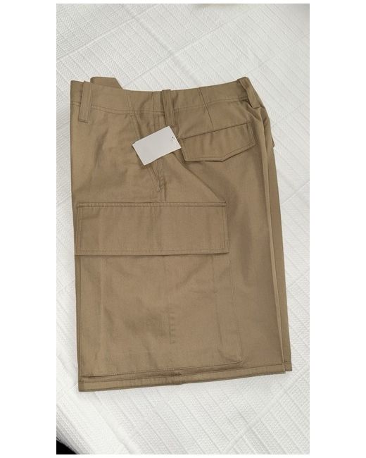 Alexander McQueen men’s cargo shorts in camel/khaki twill, size IT 46. Made in Italy. New with tags. Features flap back pockets, large side cargo pockets, zip fly with button and hook closure, and belt loops. Modern tailored fit – great smart-casual piece for summer.