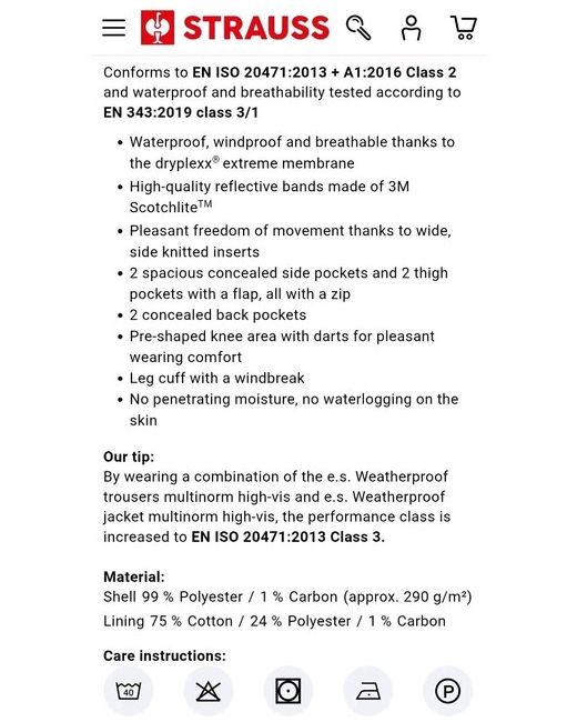 Engelbert Strauss weatherproof trousers in high-vis yellow, designed specifically for workwear. With a waist size of 34 inches and a regular fit. New without labels. These are the top of the range weatherproof trouser. RRP £260 Brand new never worn. Visibility and safety on the job. Made by the reputable brand Engelbert Strauss, these trousers are a reliable and durable choice for any outdoor work environments.