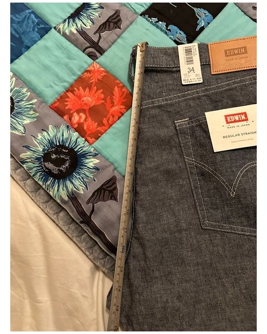 STRAIGHT LEG WITH RELAXED FIT. Made from a 7.5oz selvedge chambray woven with naturally slubbed yarns in both warp and weft. EDWIN REGULAR STRAIGHT CHAMBRAY JEANS 34"W 29"L. NOT AVAILABLE ANYWHERE ELSE.
