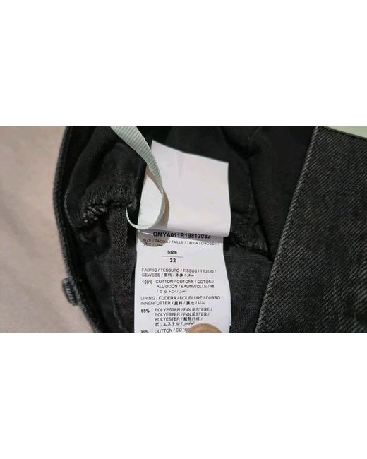 These Off White men's jeans in size W32 are a sleek and stylish choice for the modern man. Made from cotton denim in a classic black colour, they feature a button closure and a mid-rise fit. The tapered style is perfect for the summer and spring seasons, and the 5-pocket design adds a practical touch. With the Off-White logo accent, these jeans are a versatile wardrobe staple that can be easily machine washed for convenience. Perfect for any casual occasion, these jeans are a must-have for those who appreciate quality and style.