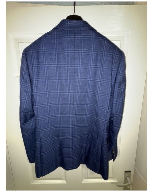 Gorgeous navy blue checked suit. Never worn. Bought for a wedding we didn’t end up attending. Suit was saved for another occasion but never ended up getting worn and now too late to return. Lighting isn’t the best but suit is a true navy colour with lighter navy checks. Selling for £80.00 but open to offers. Suit is listed on other platforms Size 38s blazer slim fit and 32inch trousers. All measurements listed on pics Suit bag included