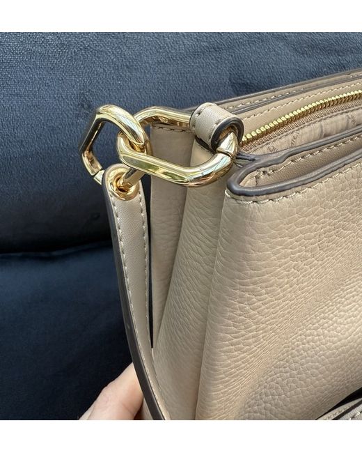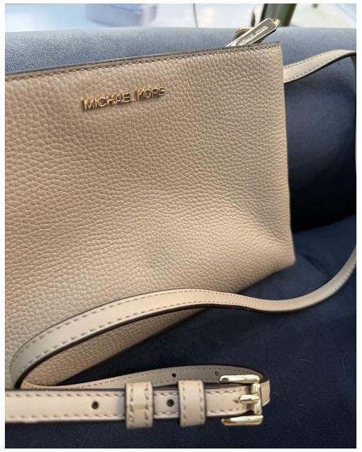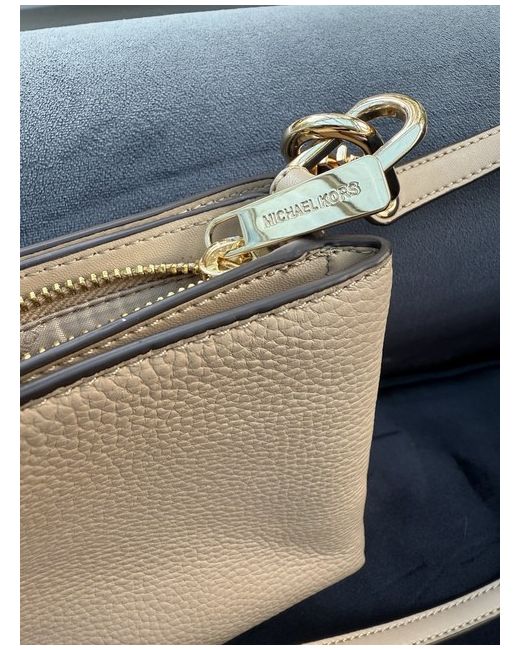 Michael Kors Medium Crossbody Bag in Beige is a stylish and versatile accessory. With a beige exterior, gold hardware accents, and detachable crossbody strap. Made of leather with a fabric lining, this designer bag from the Michael Kors Selma collection. ***NEW with tags. Perfect style and size. Could carry purse, phone etc.