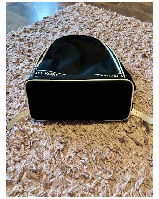 The Michael Kors Women's Backpack is a stylish and versatile accessory designed for casual occasions. Made from black leather with studded accents, this medium-sized backpack features a zip closure, adjustable strap, and gold hardware. The signature Michael Kors branding is showcased with hot-stamped initials, adding a touch of luxury to the classic design. Perfect for everyday use, this backpack is the ideal fusion of fashion and functionality for the modern woman.