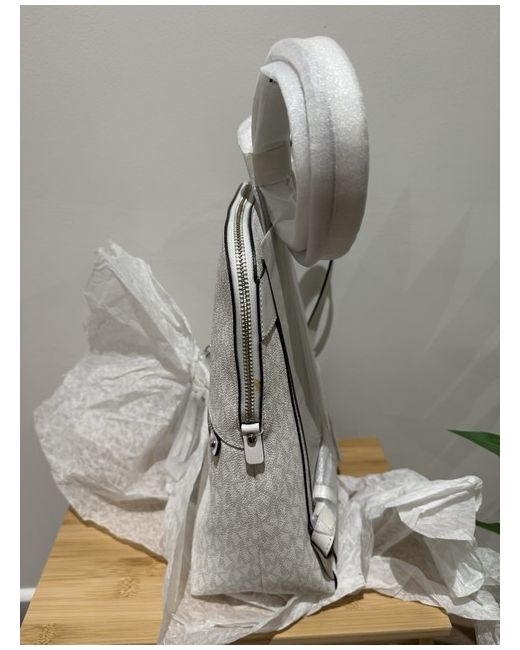 NEW NEVER USED BEFORE Backpack • Logo-print canvas • 89.4% coated canvas/9.6% polyester/1% polyurethane • Silver-tone hardware • 11.5”W X 11.75”H X 4.5”D • Handle drop: 1.25” • Exterior details: back snap pocket, front zip compartment • Interior details: back zip and slip pockets, 4 front slip pockets • Lining: 100% polyester • Zip fastening • Imported • Style # 30F3SEZB6V