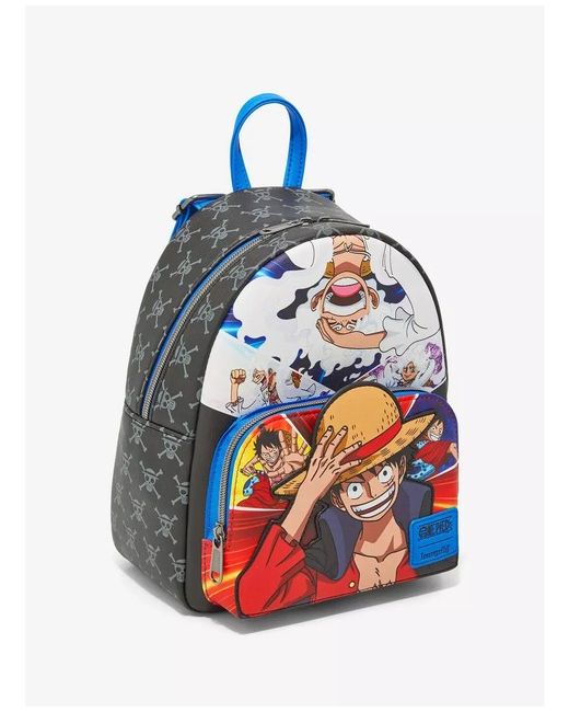 It features Luffy in his Gear 5 form up top and different depictions of Luffy on the front zipper pocket, plus his Jolly Roger all over. By Loungefly. Item is not due to release until April and will take 2-4 weeks to reach us from that point.