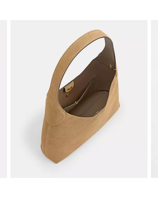 Item is brand new, never used in original packaging with tags The Coach Brooklyn 28 Suede Light Brown shoulder bag is a medium-sized, crescent-shaped bag with a tan exterior and a tan leather top handle. It features a magnetic closure, gold hardware, and brass accents. The bag has pockets for added functionality, a glazed finish, and is lined with cotton in a tan colour. Crafted from leather with a solid pattern, this stylish and practical accessory is perfect for any woman looking for a sophisticated yet comfortable handbag.