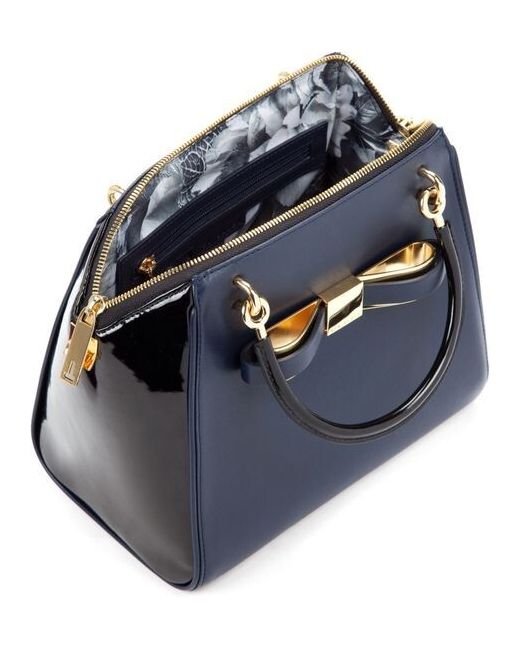 Ted Baker navy blue leather bag 2 handle and shoulder strap.