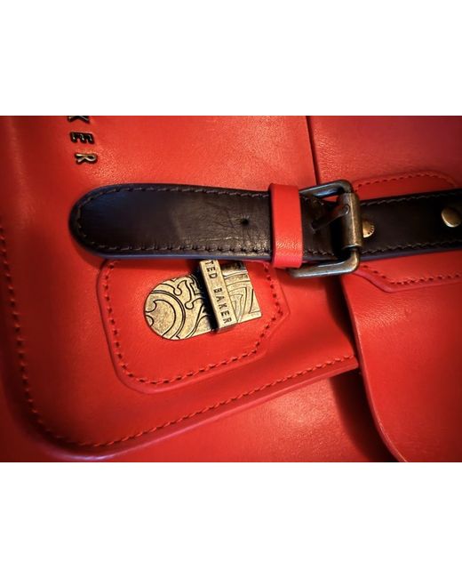 Flawless satchel, bought for £250 but never used because I have a shopping problem 🥲 Gorgeous soft, buttery leather, it's got a nice slouch to it, comes with dust bag. The Ted Baker Leather Satchel in red is a stylish and practical accessory for women. Made from high-quality leather with a solid burgundy exterior, this large satchel features a classic buckle closure and brown leather handles/straps. The interior is lined with brown stitch detail, adding a touch of sophistication to the casual design. Perfect for everyday use, this satchel embodies the Ted Baker brand's signature blend of love and fashion, making it a timeless addition to any wardrobe.