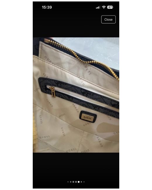 The Guess Black Monogram Shoulder Bag is a stylish and versatile accessory for women. This medium-sized rectangular bag features a classic monogram pattern on black canvas, with a zip closure and shoulder strap handle in matching black. The interior includes inner pockets for organization, making it perfect for casual occasions. The designer brand, Guess, adds a touch of luxury to this on-trend shoulder bag, which also comes with a detachable strap for added convenience. Ideal for everyday use, this bag is a must-have for those who appreciate designer fashion.