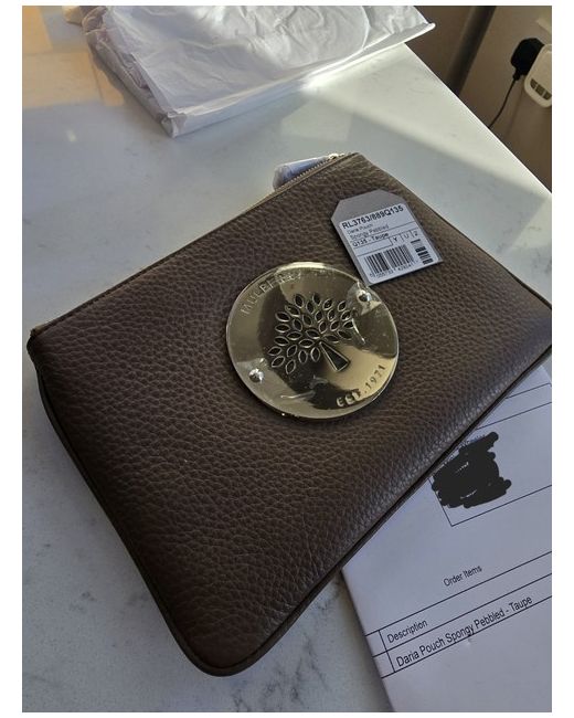 Daria Pouch Spongy Pebbled Taupe with silver hardware. Protection still in place. UK sales only and will not sell to new buyers or those with bad or little history. This is a beautiful Mulberry Daria Zip Pouch in Taupe Soft Spongy Leather with immaculate Silver Tone Hardware. Never been used and there isn’t a mark to be found, the leather is nice and soft. The silver tone hardware is still perfect . This pouch is an ideal way to store the small essential items you carry inside your bag or for use as a makeup bag or even as a clutch. The signature laser-cut Mulberry tree plaque on the front adds a chic and stylish design detail. The leather is a supple and it is lined in tree repeat fabric.