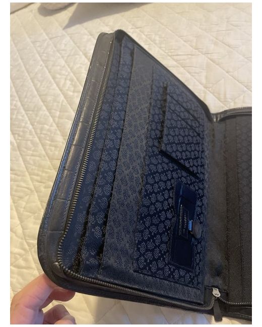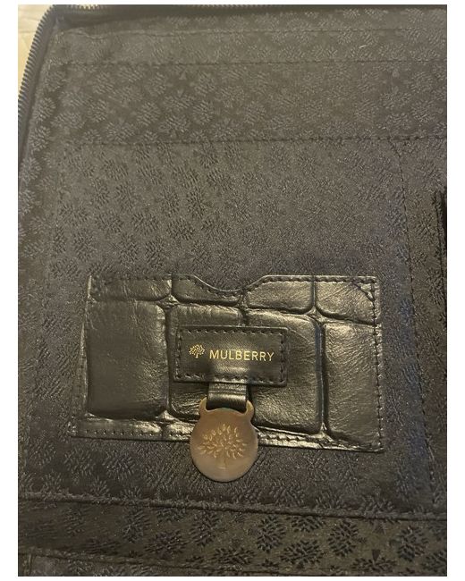 The Mulberry Black Croc-embossed Leather Document and Tablet Holder is a stylish and sophisticated accessory for both men and women. Crafted from high-quality leather with a striking croc-embossed pattern, this rectangular-shaped briefcase exudes a vintage charm. Solid brass hardware adds a touch of luxury to this practical yet elegant piece, making it perfect for carrying documents and tablets in style.