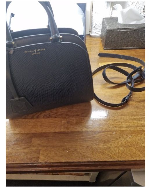 Beautiful genuine neat handbag , in original box with tissue & ribbon &98 dust bag . The bag is unused so could be a wonderful Xmas present . Width 10 inches 7.5 inches high 5 inches deep a more modern size for aspinal which are usually larger , Cost £450.00 , looks amazing day wear or evening.Shoulder strap also included