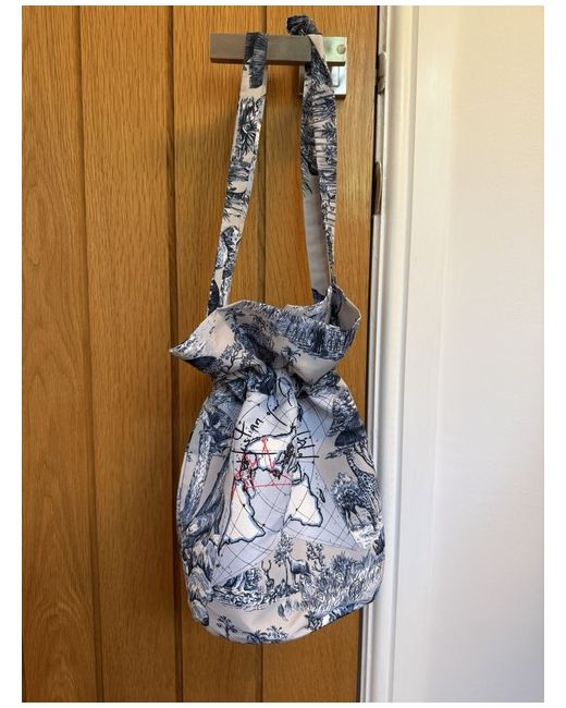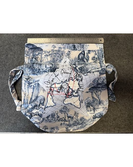The Dior Around The World Drawstring Pouch is a stylish small bucket bag designed for women. With a blue exterior made of polyester, this limited edition piece features a drawstring closure and blue hardware accents. Perfect for casual occasions. Brand new, without tags (the item was originally without tags). I will include a Dior paper bag with your purchase. Size: Approximately 32 cm W × 34 cm H × 18 cm D.
