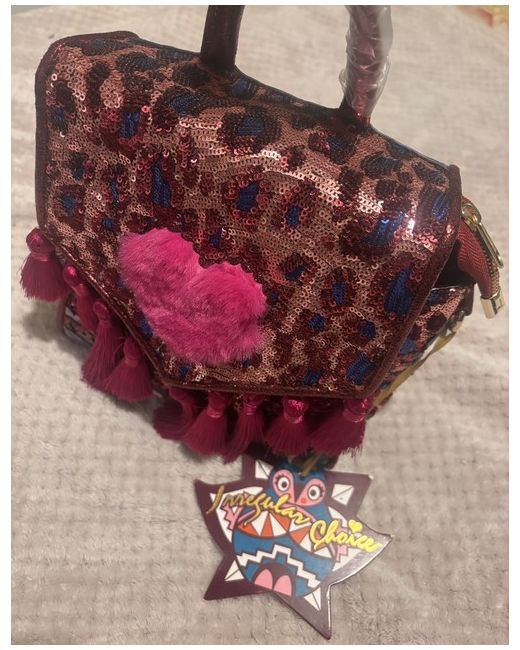 The Pink Irregular Choice Sequin Leopard print and Tassel Backpack bag is a small, stylish backpack perfect for women. with a unique multicoloured sequin leopard print exterior, this backpack combines fashion and functionality. The tassel details add a touch of flair to this distinctive accessory. Made from synthetic materials, this backpack is both durable and eye-catching, making it a perfect choice for adding a pop of colour to any outfit. Come either adjustable strap