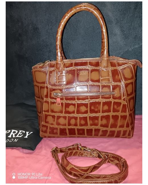 This Osprey leather bag is a stylish and practical shoulder bag designed for women. Made from high-quality leather in a rich brown colour, it features a black fabric lining for a classic contrast look. The brown leather handle/strap adds a touch of sophistication, making it a versatile accessory for any outfit. Ideal for everyday use, this new Osprey bag is a timeless and elegant addition to your wardrobe.