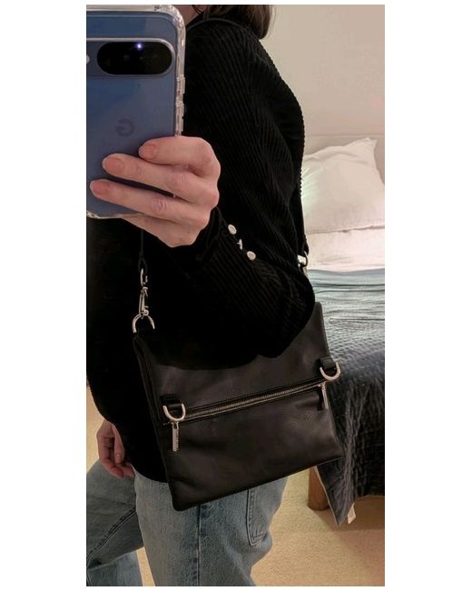 Women's Black Leather Foldover Double Zip Shoulder Bag New With Dustbag