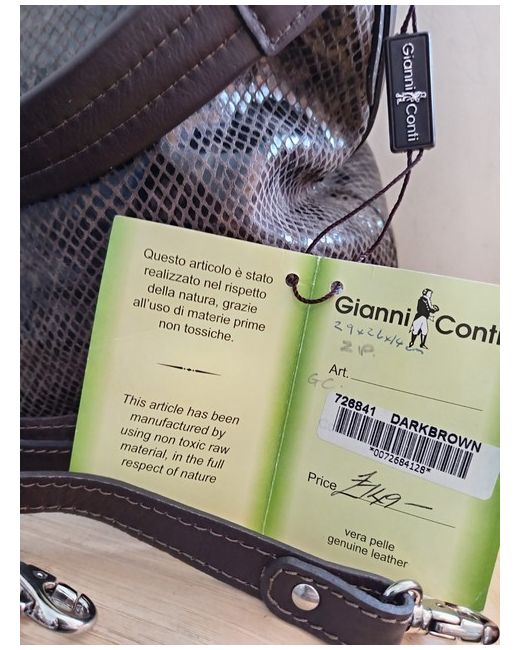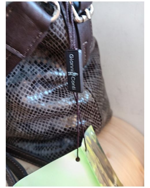 The Gianni Conti Brown Shoulder Bag is a stylish and versatile accessory for women, perfect for various occasions including travel, casual outings, workwear, and business meetings. Made from high-quality leather with a luxurious python finish, this medium-sized bag features a zip and magnetic closure, a beige lining, and inner pockets for added functionality. The shoulder strap can be worn as a crossbody bag, making it convenient and easy to carry. With silver hardware, a classic design, and a sophisticated touch, this bag is a must-have for this seasons look Brand new with tags Ref-2049-8v.