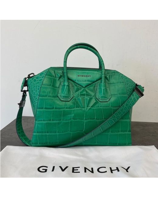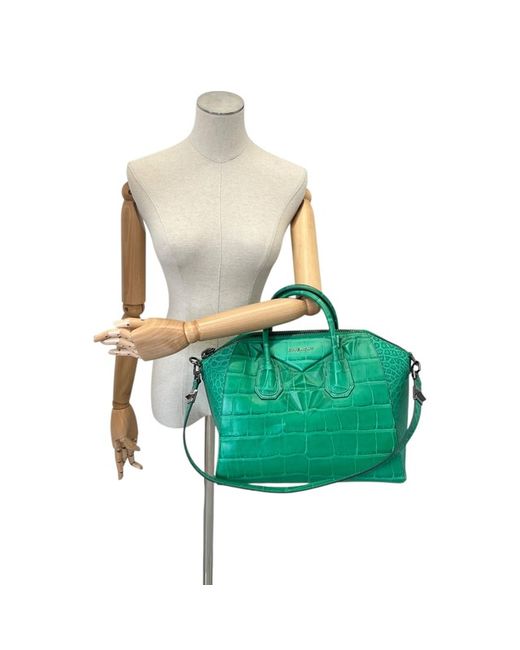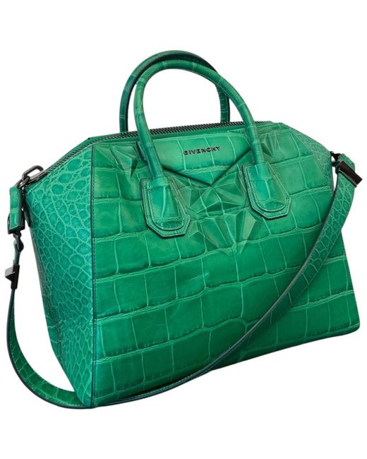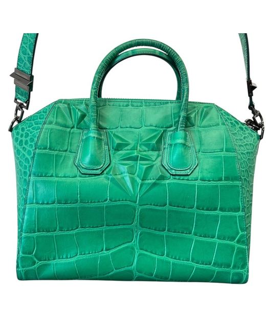 Women's Green Croc-Print Antigona Medium Handbag
