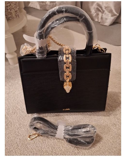 The Aldo bag is a stylish and versatile shoulder bag designed for women. Made from black faux leather, this rectangular-shaped bag is perfect for casual occasions. It features a detachable strap, allowing for different styling options. The brand's signature style and quality construction make this bag a fashionable and practical choice for everyday use. This bag is completely brand new and wrapped. It would make a very nice Christmas present.