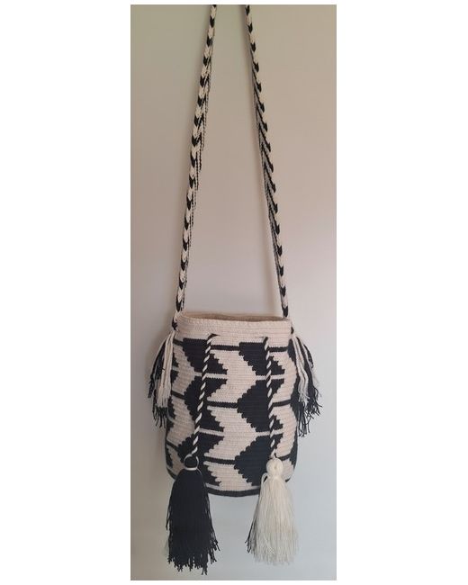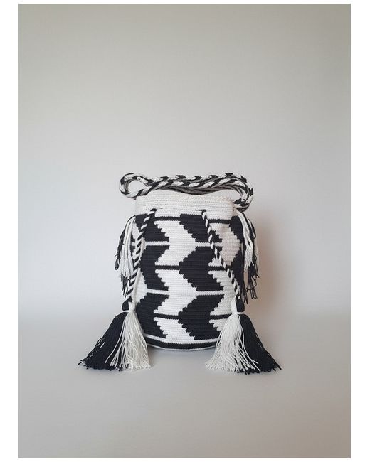The Wayuu are an indigenous community of Colombia. Its striking black and white pattern make it a perfect accessory for all outfits. Materials: All Wayuu mochilas are made from acrylic and cotton blend.