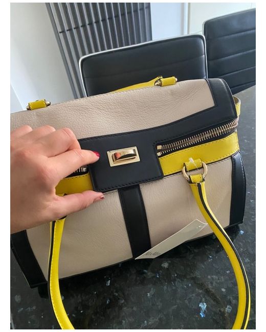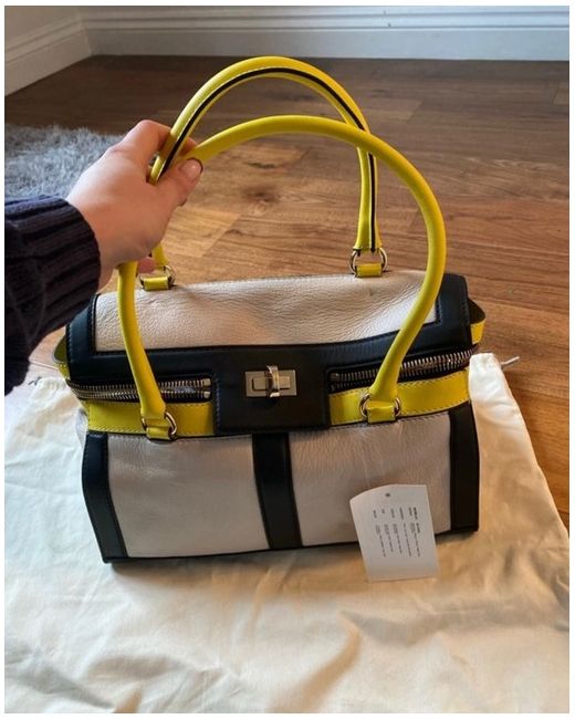 Crafted from high-quality calf skin leather in a striking acid yellow beige and black colour, it is sure to turn heads. The opening is a turn clasp. Sizing as shown in pictures.