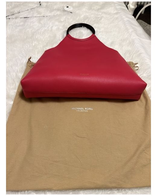 The Michael Kors Collection Handbag is a stylish and triangle-shaped top handle bag. Made from luxurious leather in a beautiful raspberry leather. I have had this bag a few years and just not had the opportunity to use it so decided to sell. I still have the tags but not attached and the internal pouch still has the packaging attached. It was £275 new however the handles ( wooden) have some small marks on them. The bag has been stored in the dust bag however I did not have the handles covered and I think that is how they have become damaged. Price reflects this. 40cm wide 34cm length ( to the bottom of the handle) 14cm handle diameter