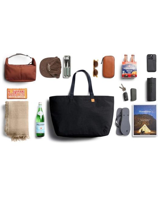 Manufacturer Bellroy. Grab handles snap together to prevent the tote from spilling open when full. Two handle lengths allow both comfortable shoulder carry, and easy in-handy carry.