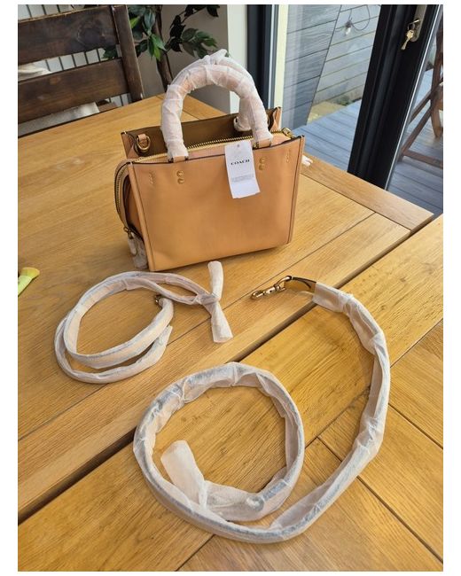 Natural pebble leather in tumeric colour, glovetanned leather and suede One credit card slot Inside snap and multifunction pockets Zip closure, fabric and suede lining Two open compartments Handles with 3 3/4" drop Detachable straps with 11 1/2" drop for shoulder wear Detachable long strap with 21 1/2" drop for shoulder or crossbody wear Four protective feet at base 9 3/4" (L) x 7 3/4" (H) x 5 1/2" (W) Style No. C6506 this model did not come with dangle tag. all hardware vosvh branded and safety protection