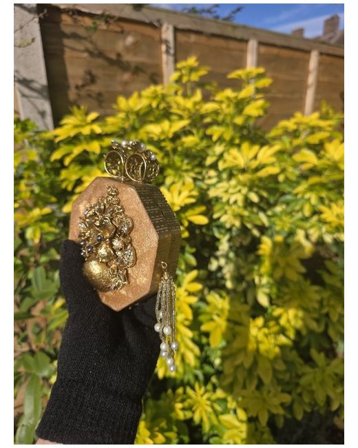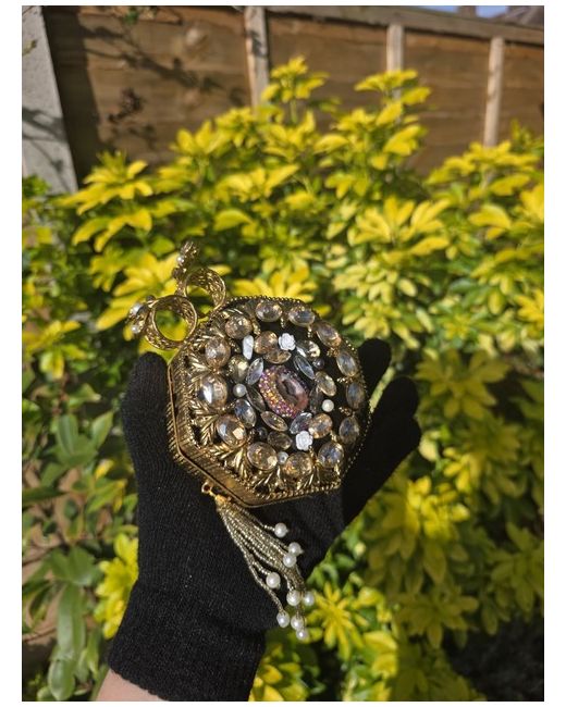 Turn heads with this breathtaking, highly decorative accessory! Handle: Unique double finger ring closure/handle with pearl accents. Key Features.