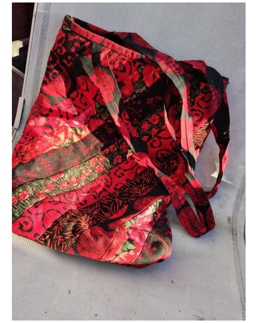 Stunning and elegant bespoke bag. Beautifully hand crafted and designed. Made with a silk cotton mix high end fibres and measures from bottom to top of bag = 14 inches (exluding handles) and 11 inches across. Gold thread scripting inside the bag. Eye catching bespoke design pattern and a nice array of reds and blacks. If you enjoy owning a unique item and value beauty in an item, then this bag will not disappoint. Makes a great unique gift for someone special. This is over 40 yrs old and has been kept in a dry, dust and light free place to preserve it's beauty and hold its condition and value. Please check out my other rare and beautiful items, thanks.