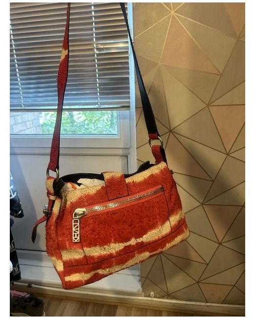 This stylish crossbody bag from KENZO is a must-have for any fashion-conscious woman. The exterior is made of soft suede in a striking red colour, sure to turn heads wherever you go. The bag features the iconic KENZO branding, adding to its appeal. Perfect for carrying all your essentials, this bag is both practical and stylish. Whether you're running errands or heading out for a night on the town, this KENZO bag is the perfect accessory to complete any outfit.