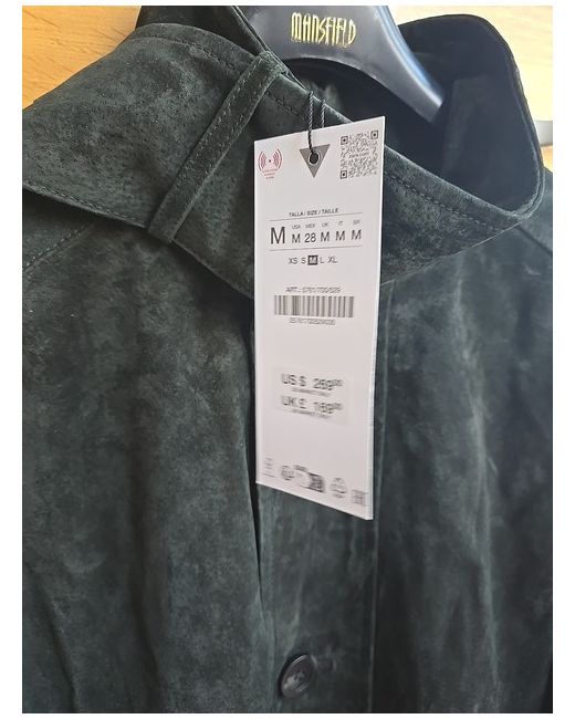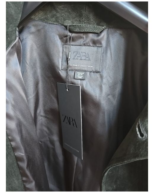 ZARA Womens 100% Suede Leather Jacket Dark Green Size Medium 5761/700/529 Brand new with tags. 100% suede leather High collar with a tab and long sleeves with buttoned cuffs. Front welt pockets. Elasticated hem. Contrasting inner lining. Front button fastening.