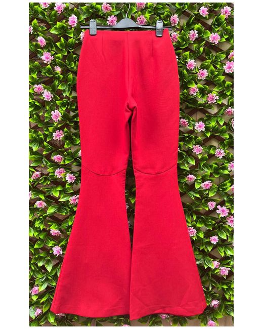 Women's Red Bevis High Waisted Exaggerated Kick Flare Trousers UK 8 Ted 1