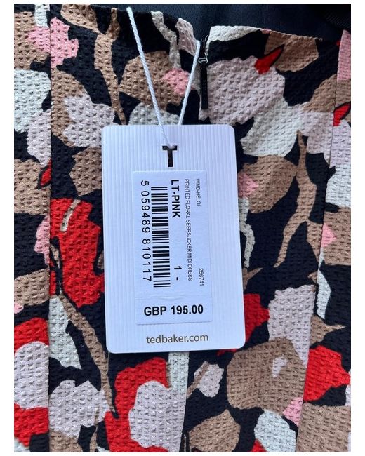 Ted Baker Helgi black multi floral print seersucker midi dress. TED Size 1/UK 8.