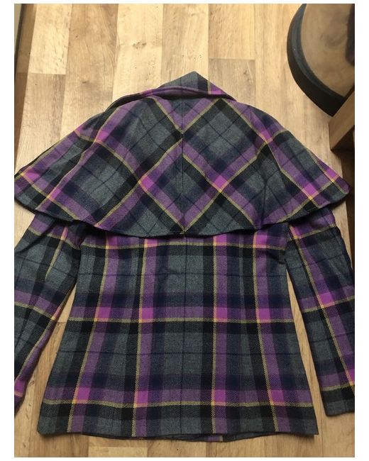 This Ted Baker wool coat is a stylish addition to any woman's wardrobe, featuring a multicoloured design with a button accent for a touch of sophistication. The regular fit and size 12 make it a versatile option for casual occasions during the winter season. With a high-quality wool outer shell and insulation, this coat not only provides warmth but also adds a touch of luxury to your outfit. Remember to dry clean only to maintain its quality and appearance. Fabulous and unusual cape design