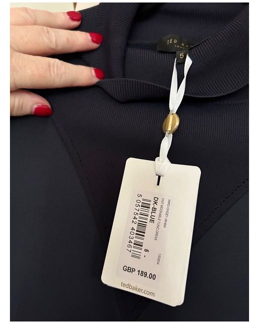 Midnight Blue Ted Baker A Line Dress - long sleeves, side pockets. Ted Baker size 5 UK 16.