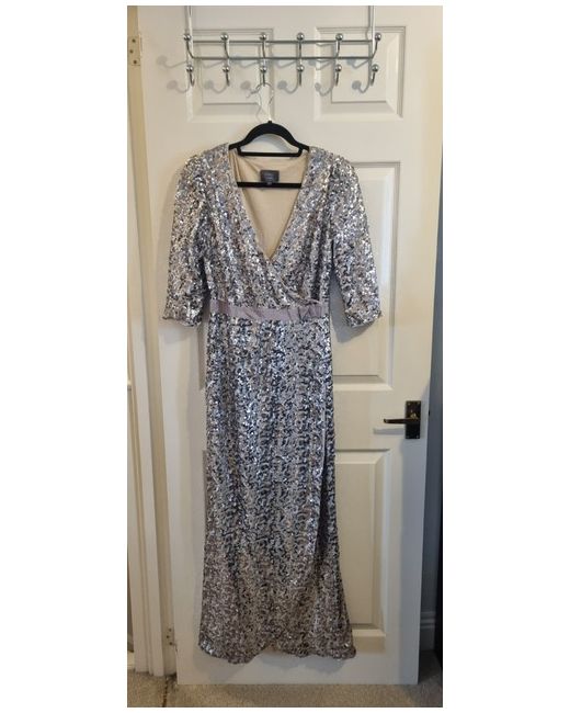 Coast Silver Sequin Maxi with nude lining size 12 Brought from a sample sale never got chance to wear Has a slight pull inside fabric image attatched Button fastening