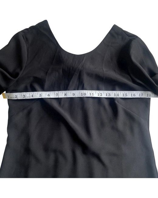 The dress features a roll neck with a tie closure, large bell sleeves with a white fabric underline, and a V-back detail. Made from chiffon fabric with a polyester and elastane blend, this knee-length dress in black is perfect for travel, weddings, parties, work, or casual wear during any season.