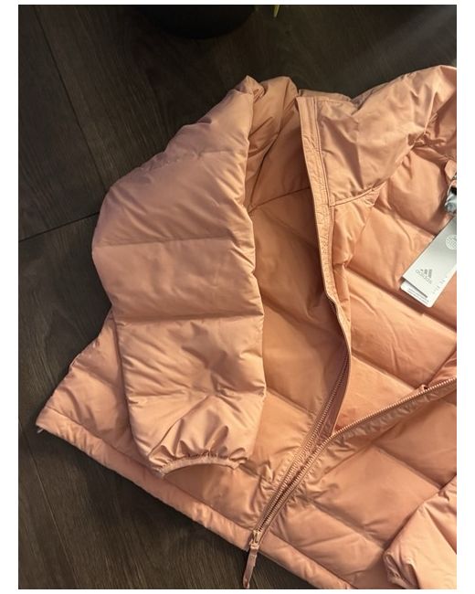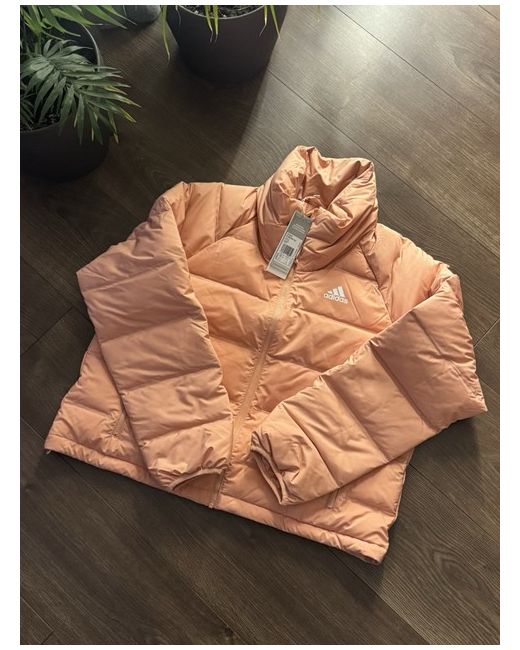 The adidas Outdoor Helionic down puffer jacket in apricot colour, size small (UK 8-10), is a stylish and practical choice for outdoor activities during the winter season. Made with polyester outer shell material and insulated with down, this jacket provides warmth and protection from the cold. The jacket features a puffer style design, making it both fashionable and functional for casual occasions. Machine washable and easy to care for, this jacket is a versatile addition to any woman's wardrobe.