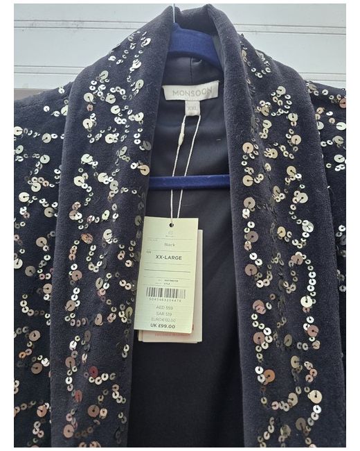 The Monsoon Sparkling Evening Jacket is a stylish and elegant outerwear piece designed for women in size 2XL size 24. Made from a combination of 80% cotton and 20% polyester, this short-length jacket in black is perfect for evening parties or special occasions. The regular fit and polyester insulation material ensure comfort and sophistication, making it a standout addition to any wardrobe. With its evening/party style from the reputable brand Monsoon, this jacket is sure to make a sparkling impression.