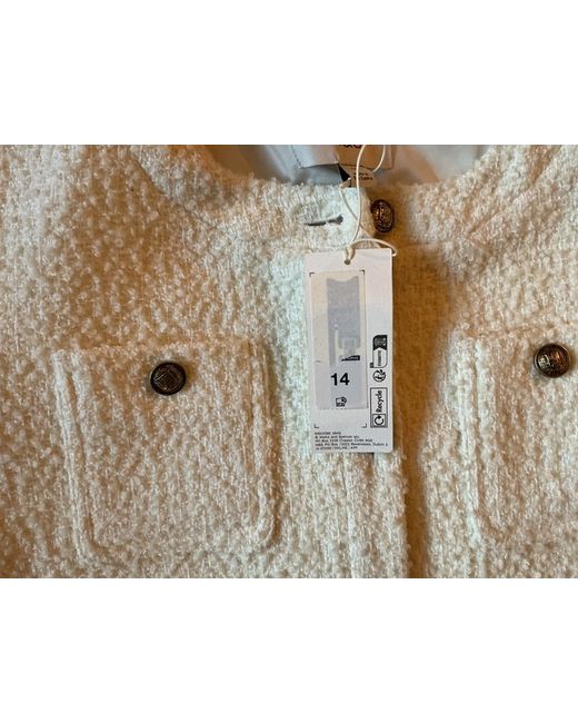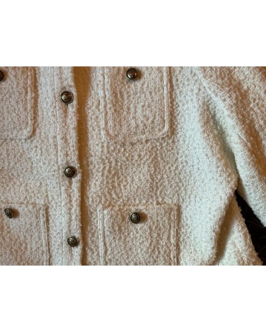 Women's White MS Jacket 14 Ivory Boucle Pockets Gold Buttons Lined