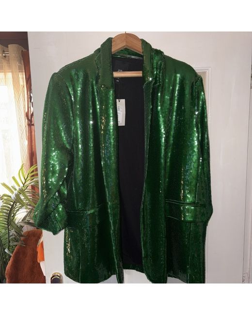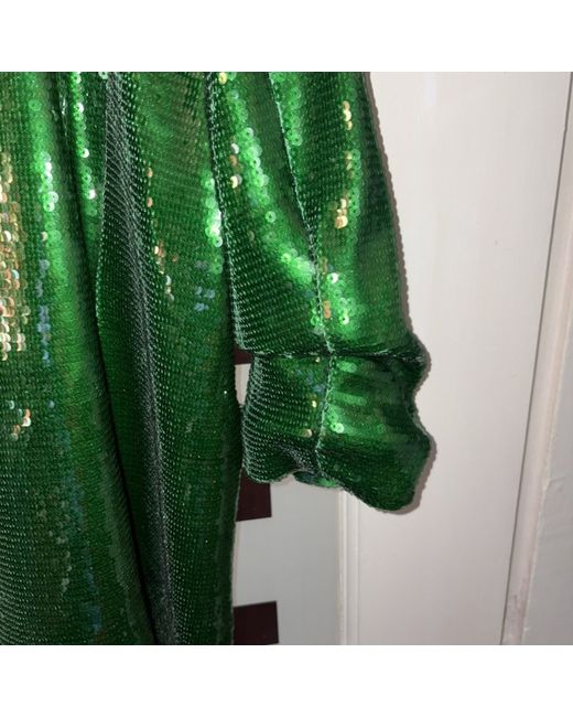 Ideal for Christmas and New Year’s parties. Spectacular ladies green sequin size 18 not been worn still has tags. Features scrunched up sleeves.