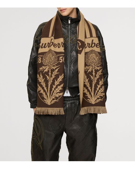 Pledge allegiance to team Burberry with this Italian-made scarf, a piece made from wool that's woven with seasonal motifs and an elegant cursive logo. It's modelled on sports scarves, and so some of the brand's key emblems feature as markers of your loyalty: the thistle shield, stripes and 1856 - the year Thomas Burberry founded this heritage label.