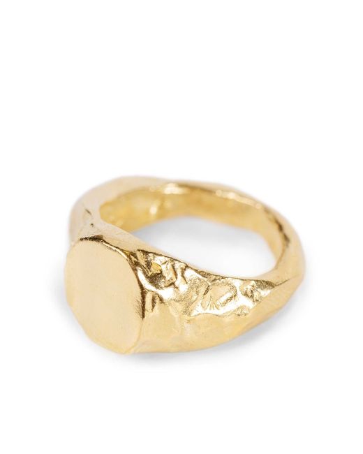 The Simuero Sello Soyem Ring from the Marea Collection blends minimalist form with artisanal craftsmanship. Handmade from gold-plated recycled 925 sterling silver, each piece embraces subtle imperfections, making every ring a unique statement of wearable art.