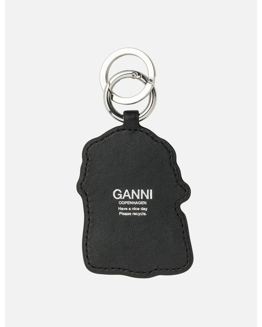 GanniJoy Dog Bow KeyringMade of recycled leatherDog-shaped keychainGANNI logoSilver-tone split ring and claspColor: Black