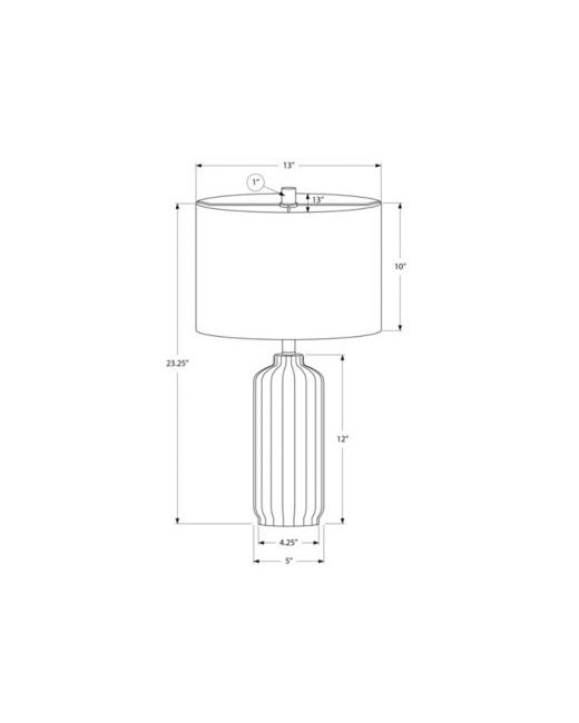 Beautify your space with this fashionable and stylish 23 table lamp. Composed of high-quality ceramic material in a chic ribbed design, this decorative lamp is complimented with a sophisticated ivory fabric shade that diffuses the light beautifully.